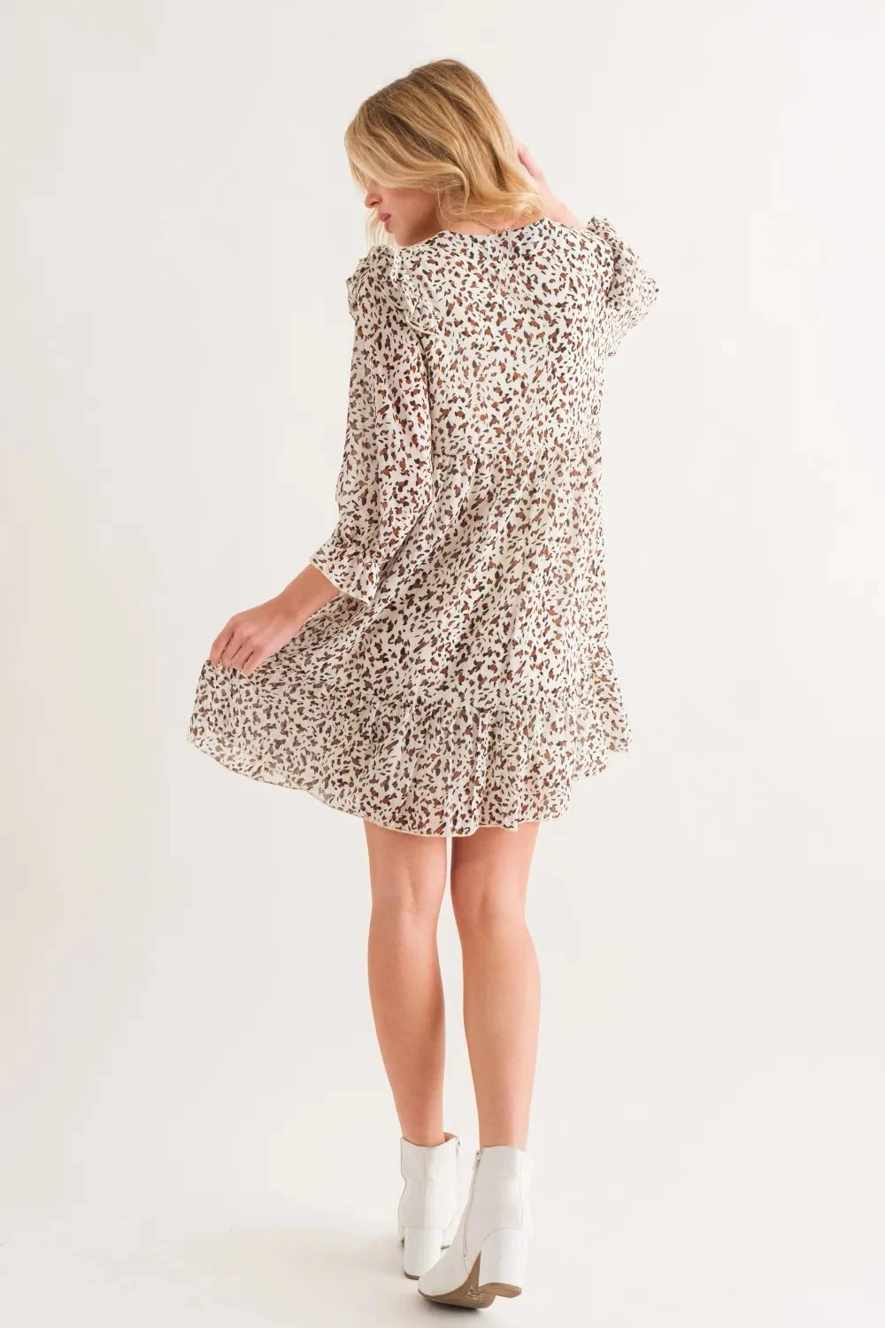 And The Why Leopard Ruffle Hem Woven Mini Dress