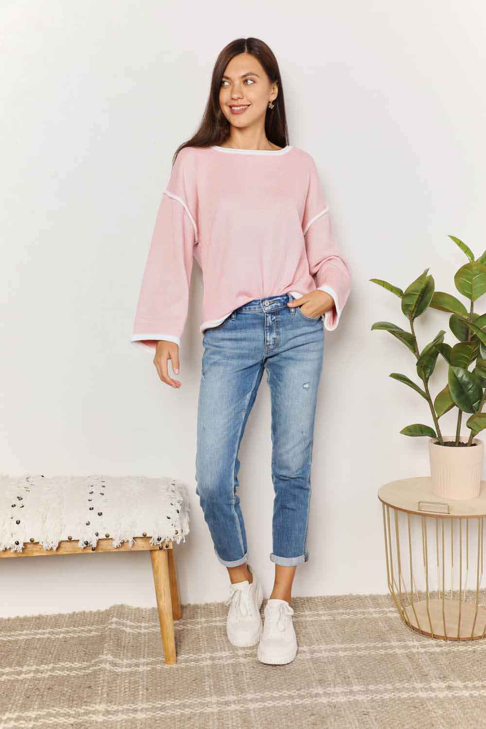 Angel Wings Contrast Detail Dropped Shoulder Knit Top
