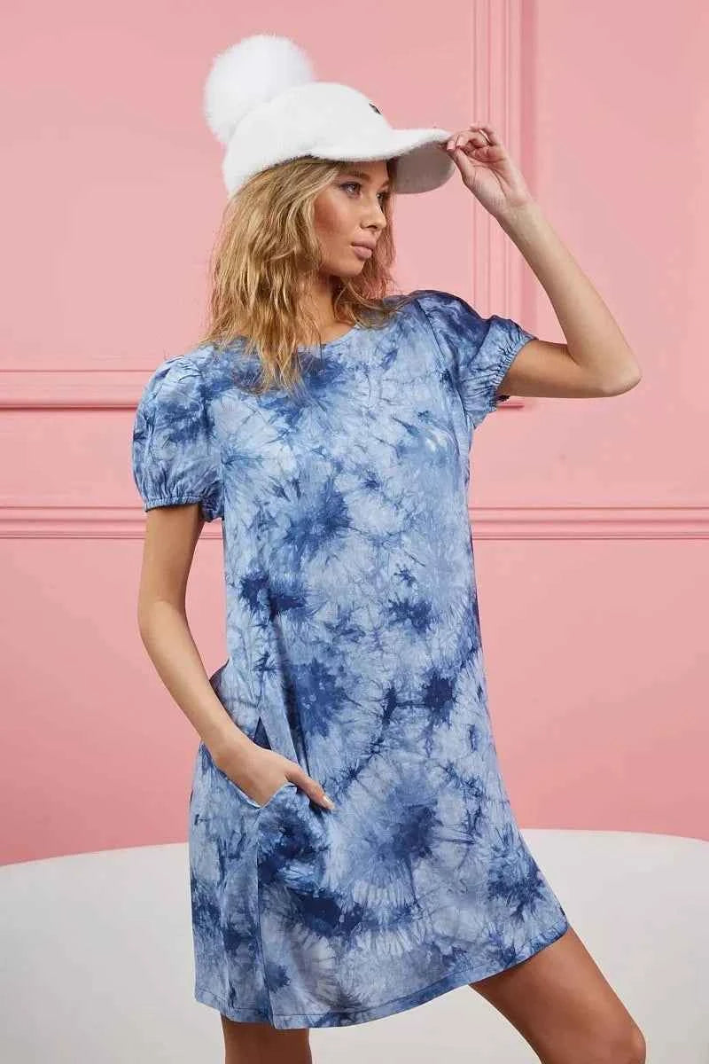 BiBi Puff Sleeve With Side Pockets Tie Dye Dress