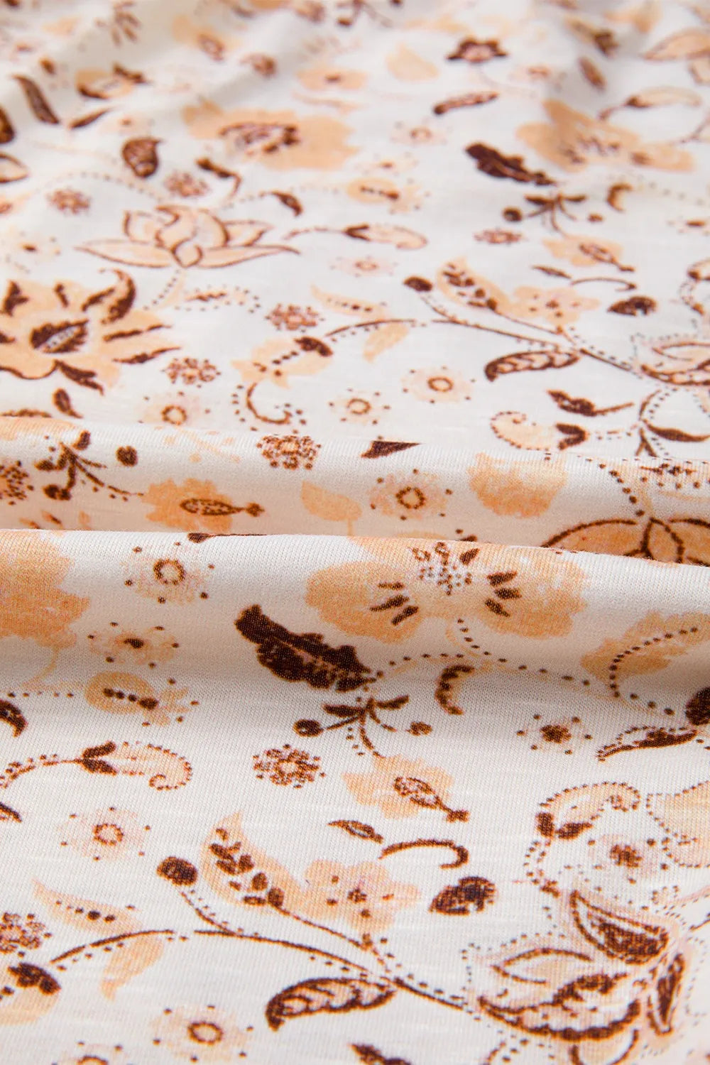 Boho Floral Print Half Placket Short Sleeve Loose Blouse