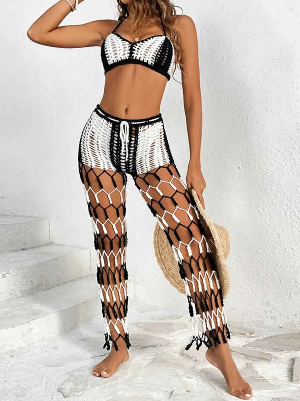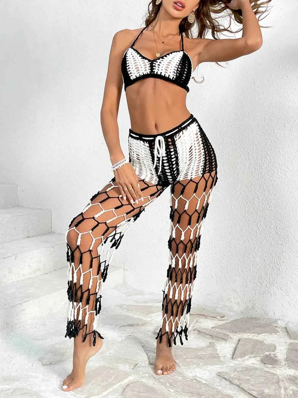 Cutout Halter Neck Top and Pants Two-Piece Swim Set