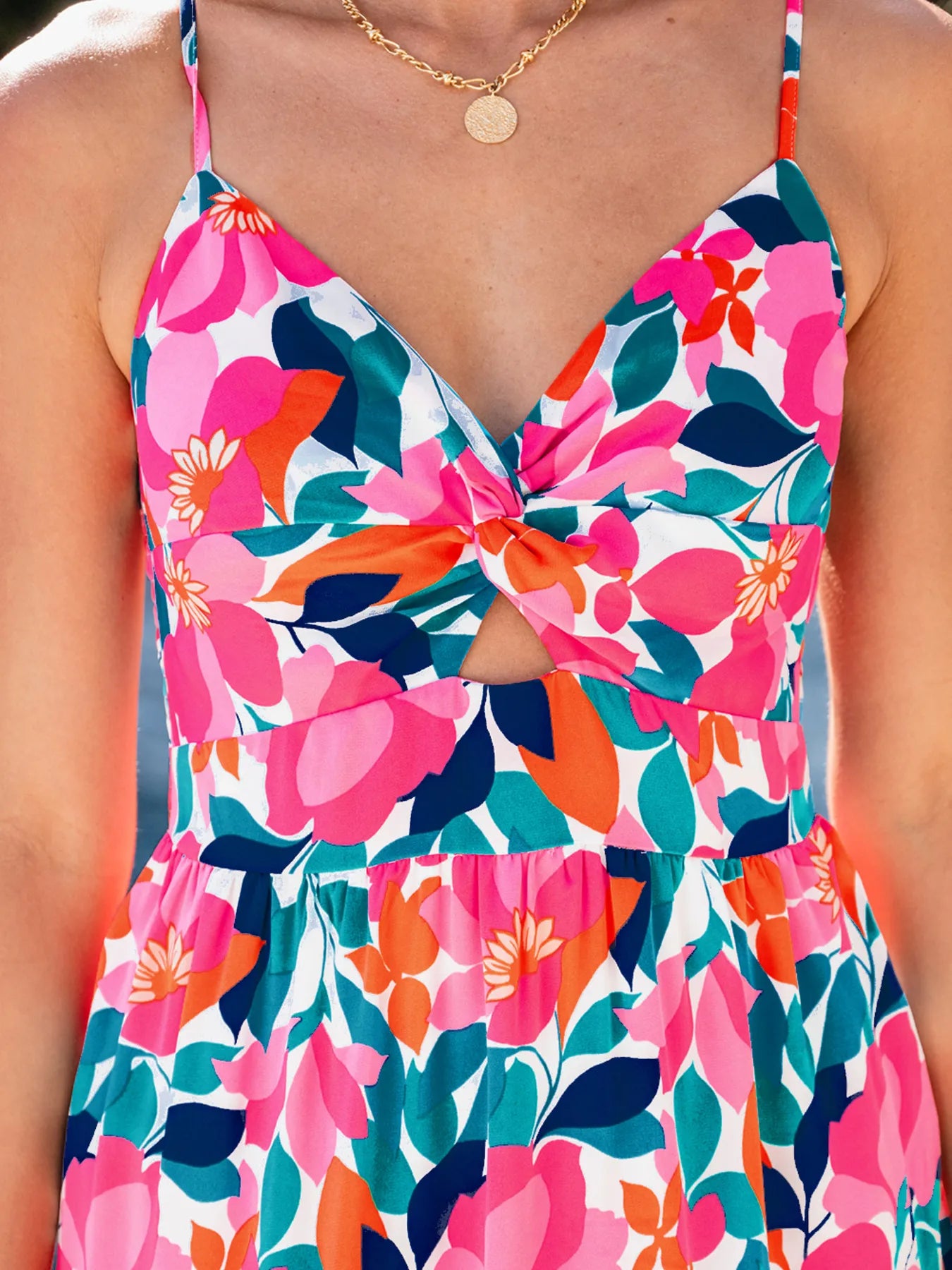 Floral Twisted Smocked Back Tiered Maxi Dress