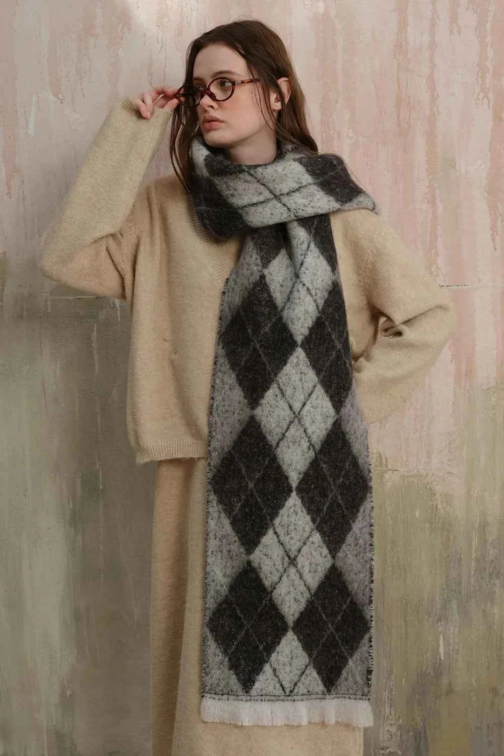 Fringe Argyle Polyester Scarf