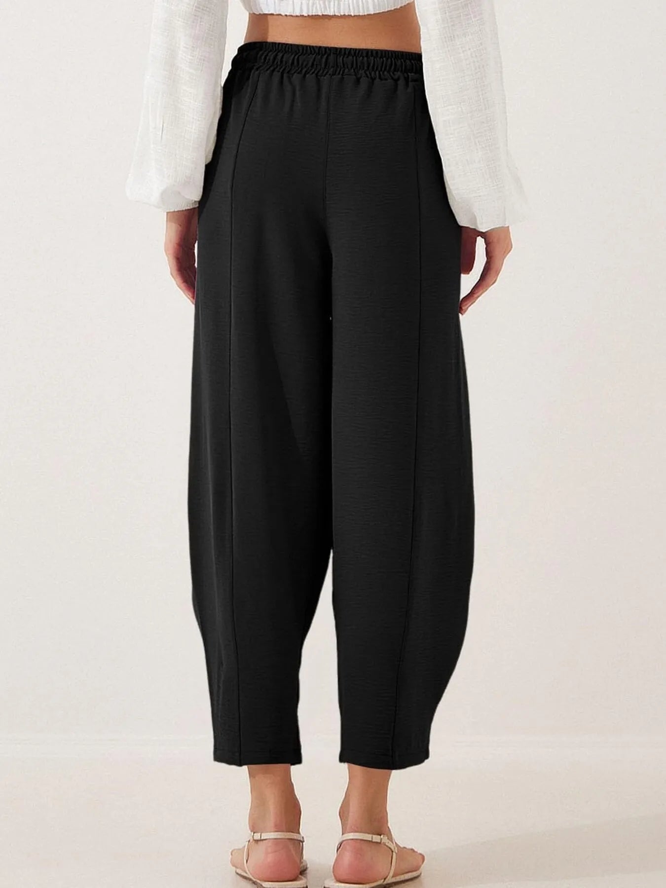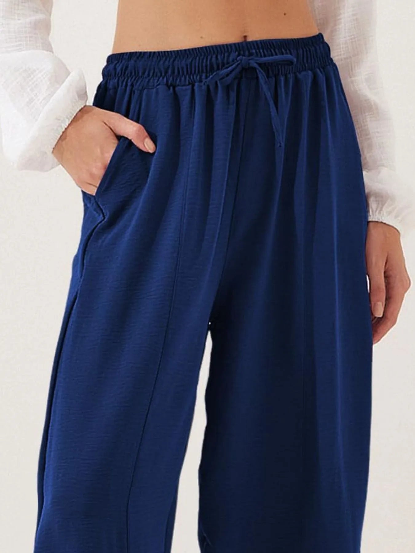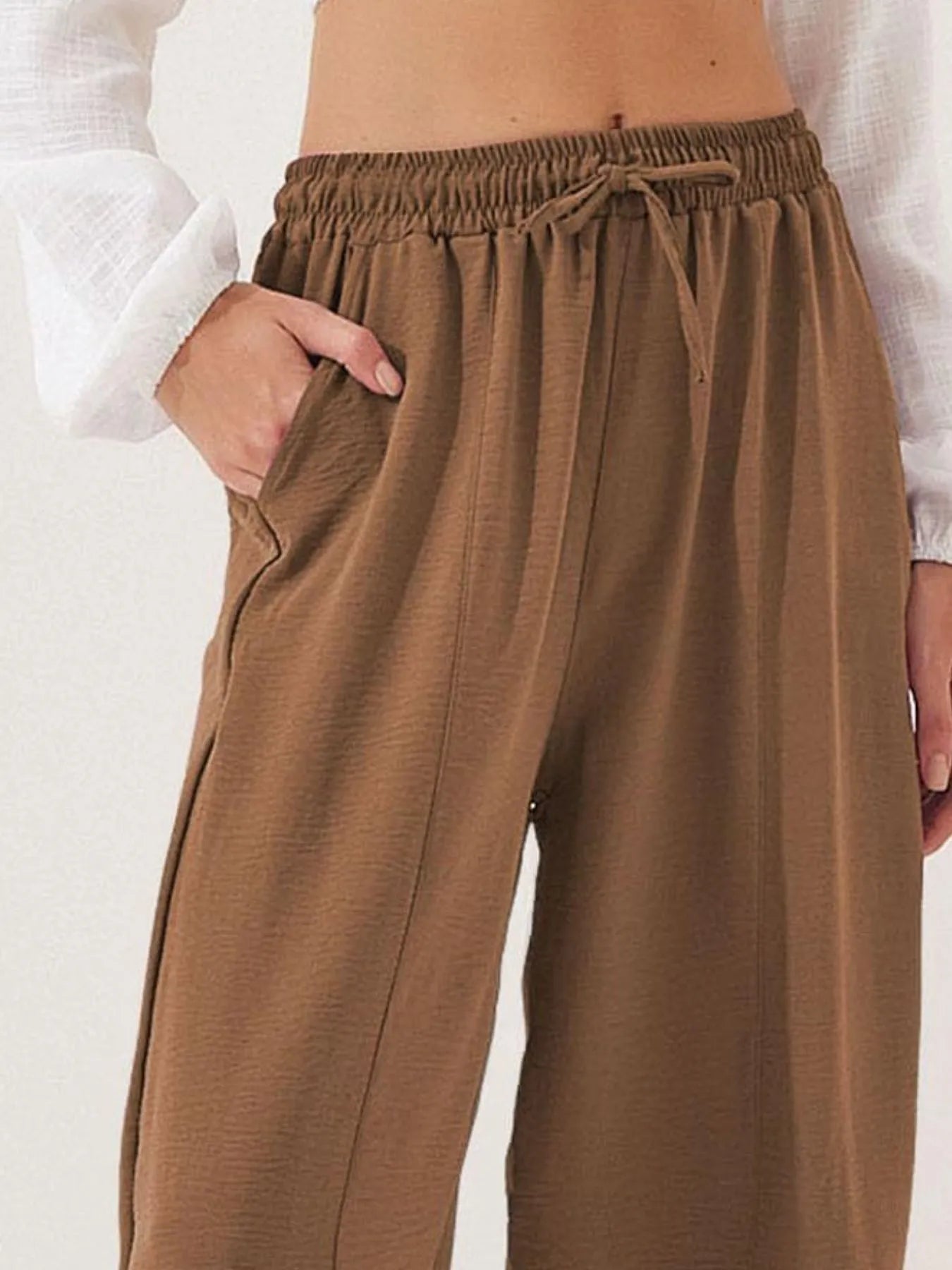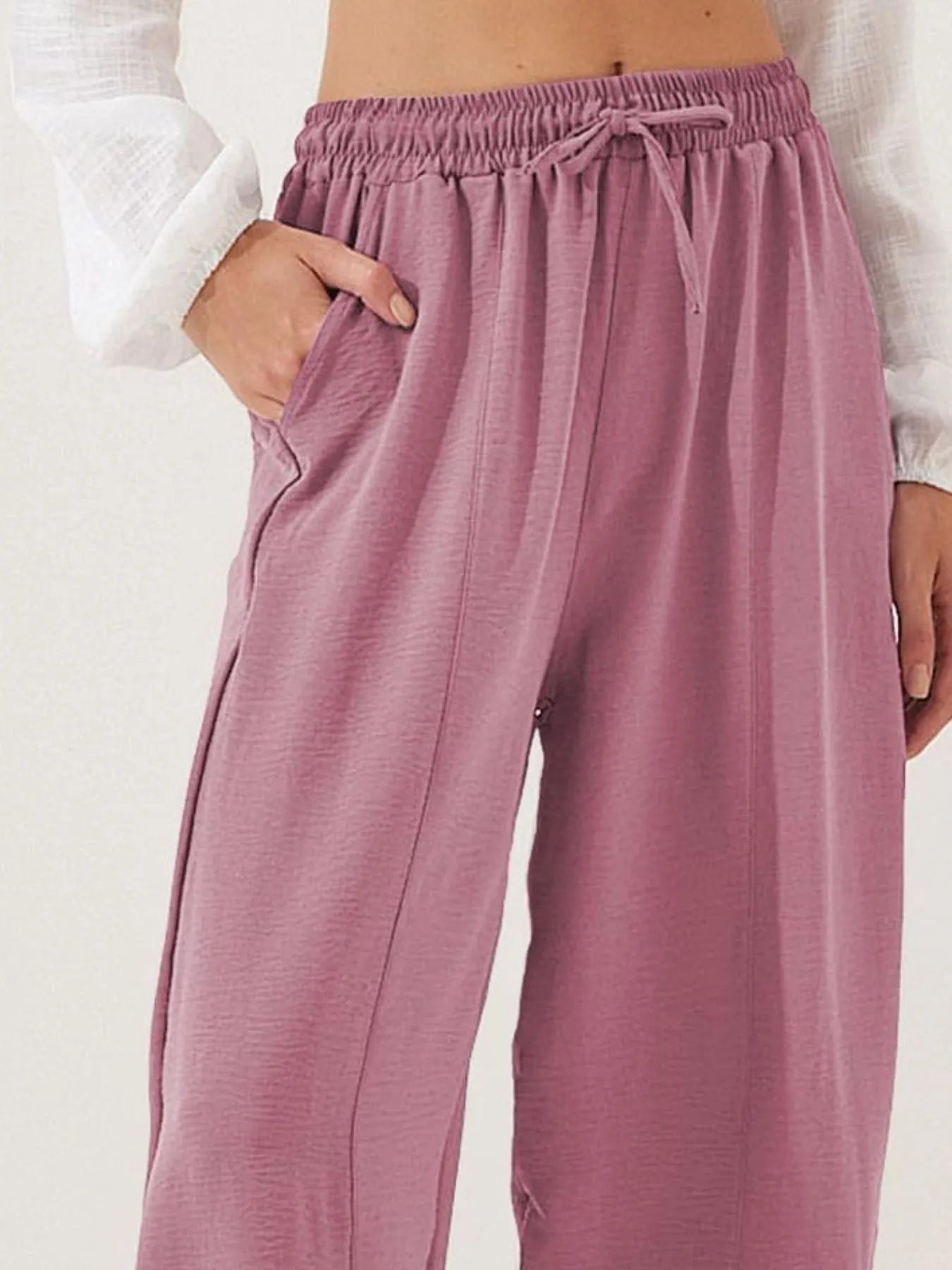 Full Size Drawstring Wide Leg Cropped Pants Plus Size