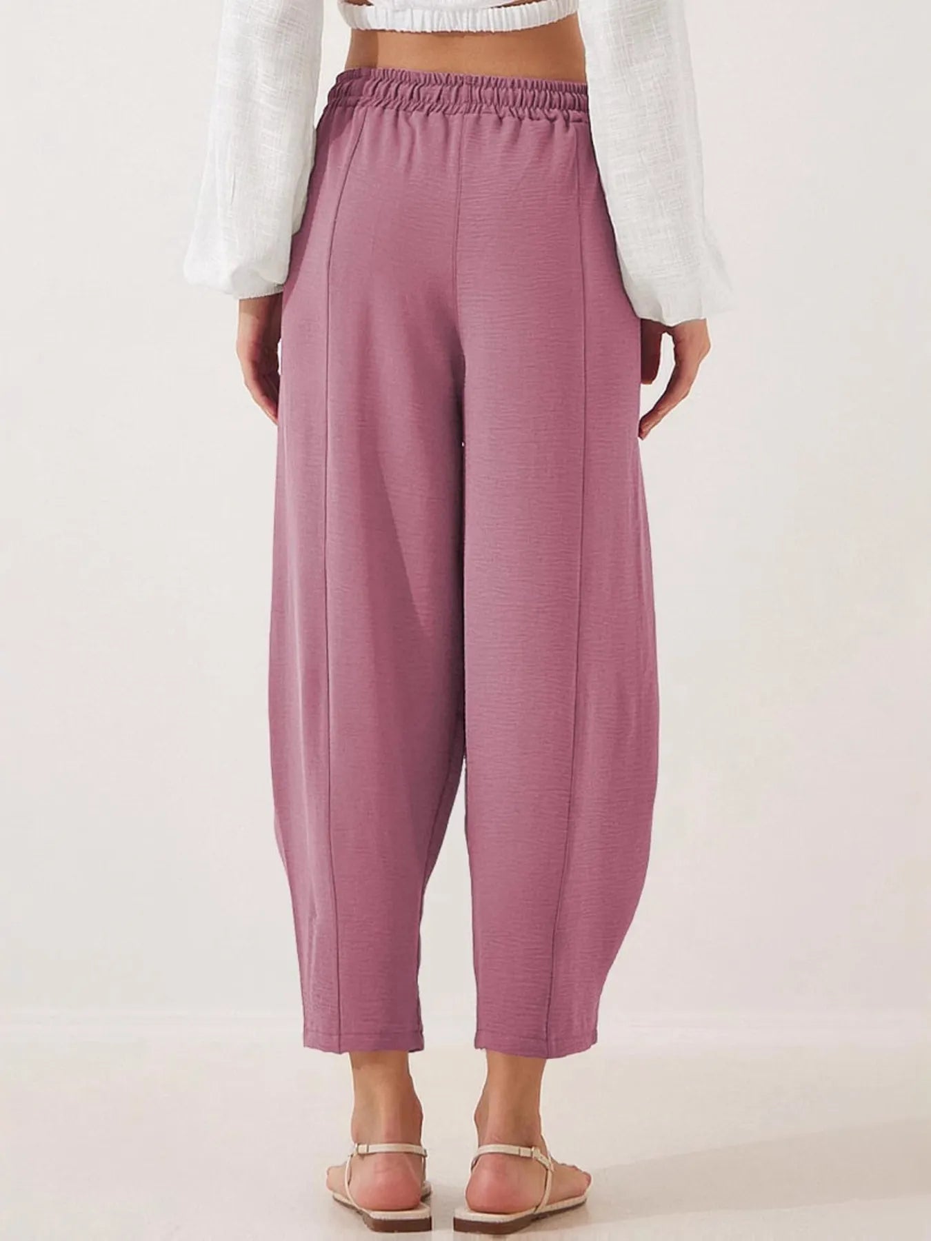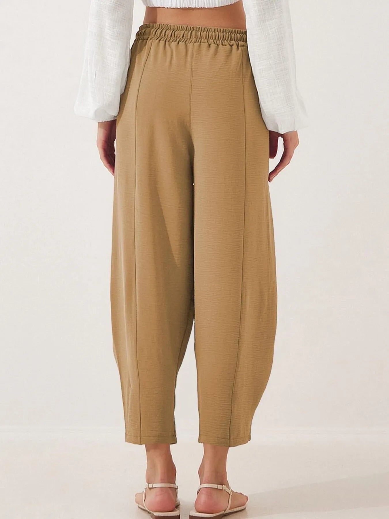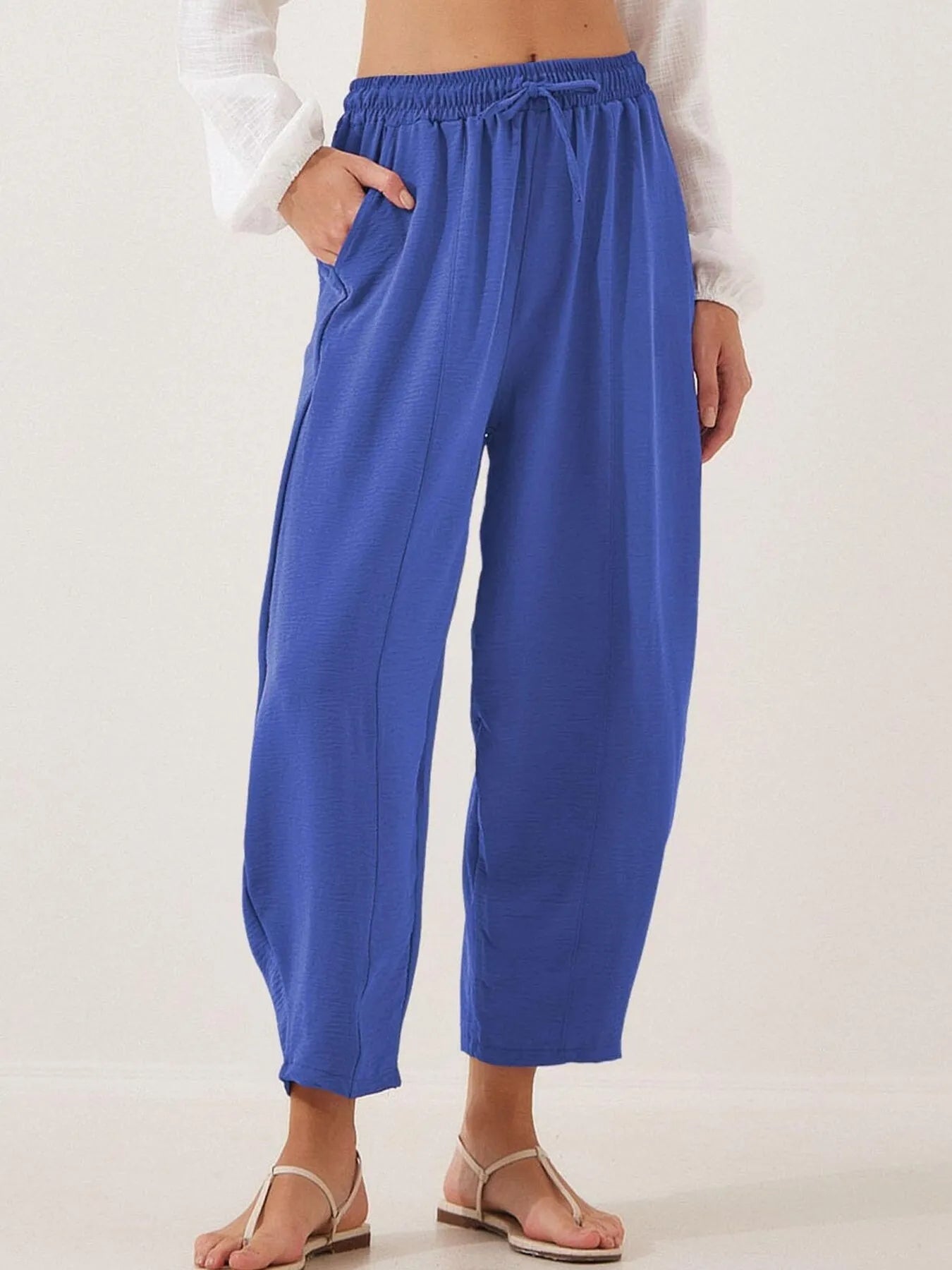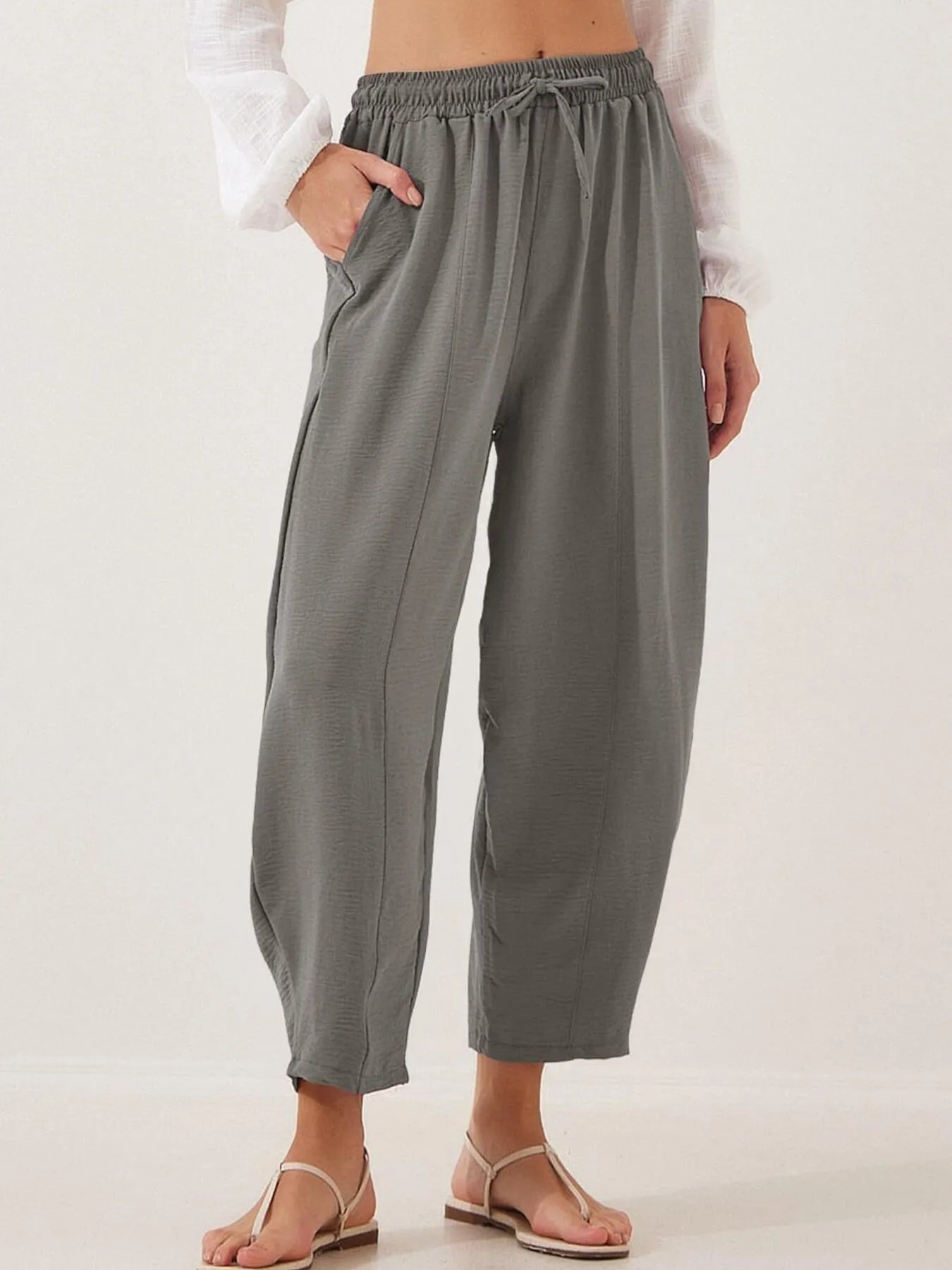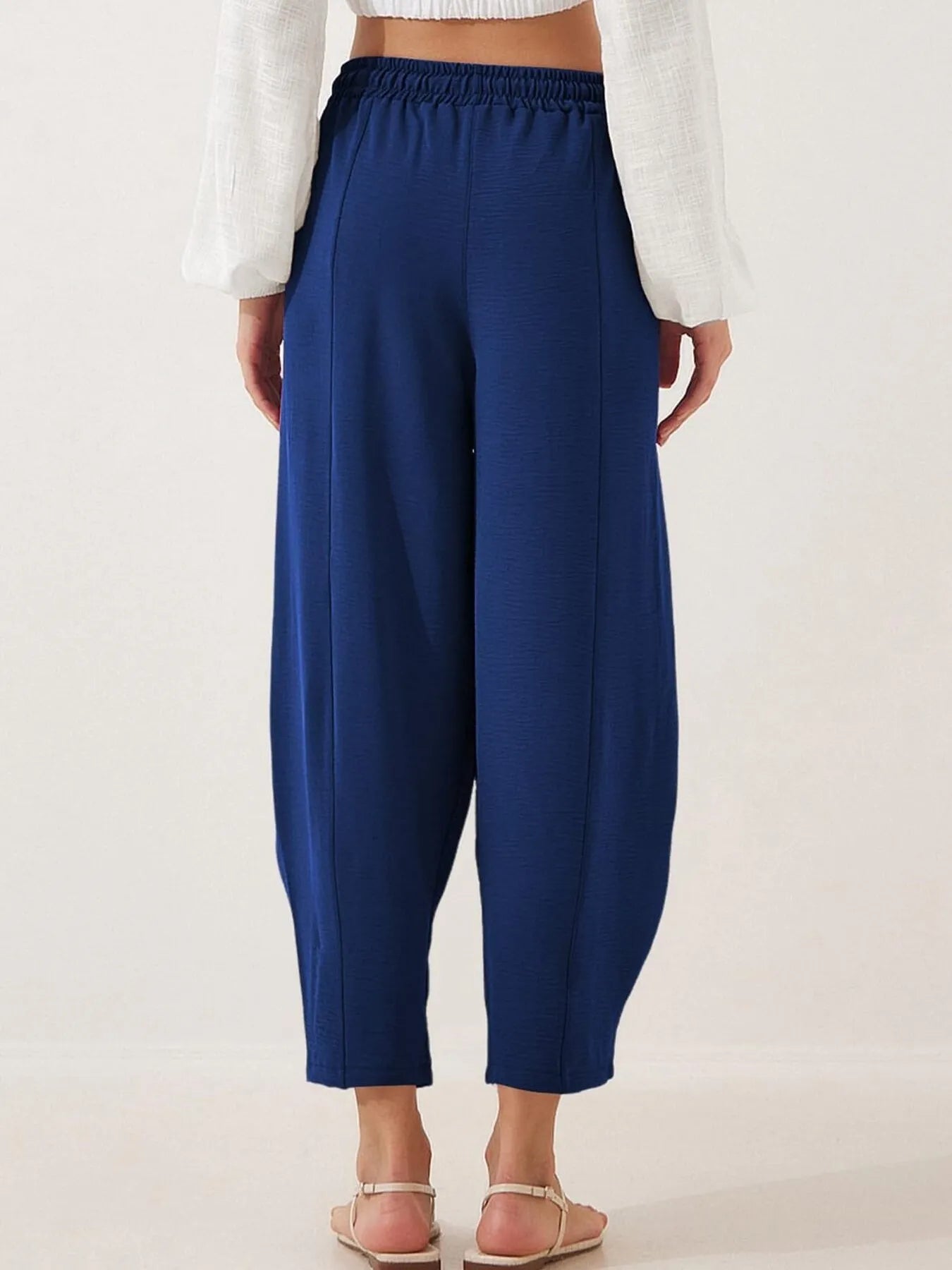 Full Size Drawstring Wide Leg Cropped Pants Plus Size