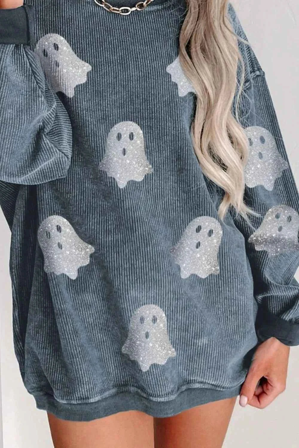 Glitter Ghost Round Neck Long Sleeve Sweatshirt