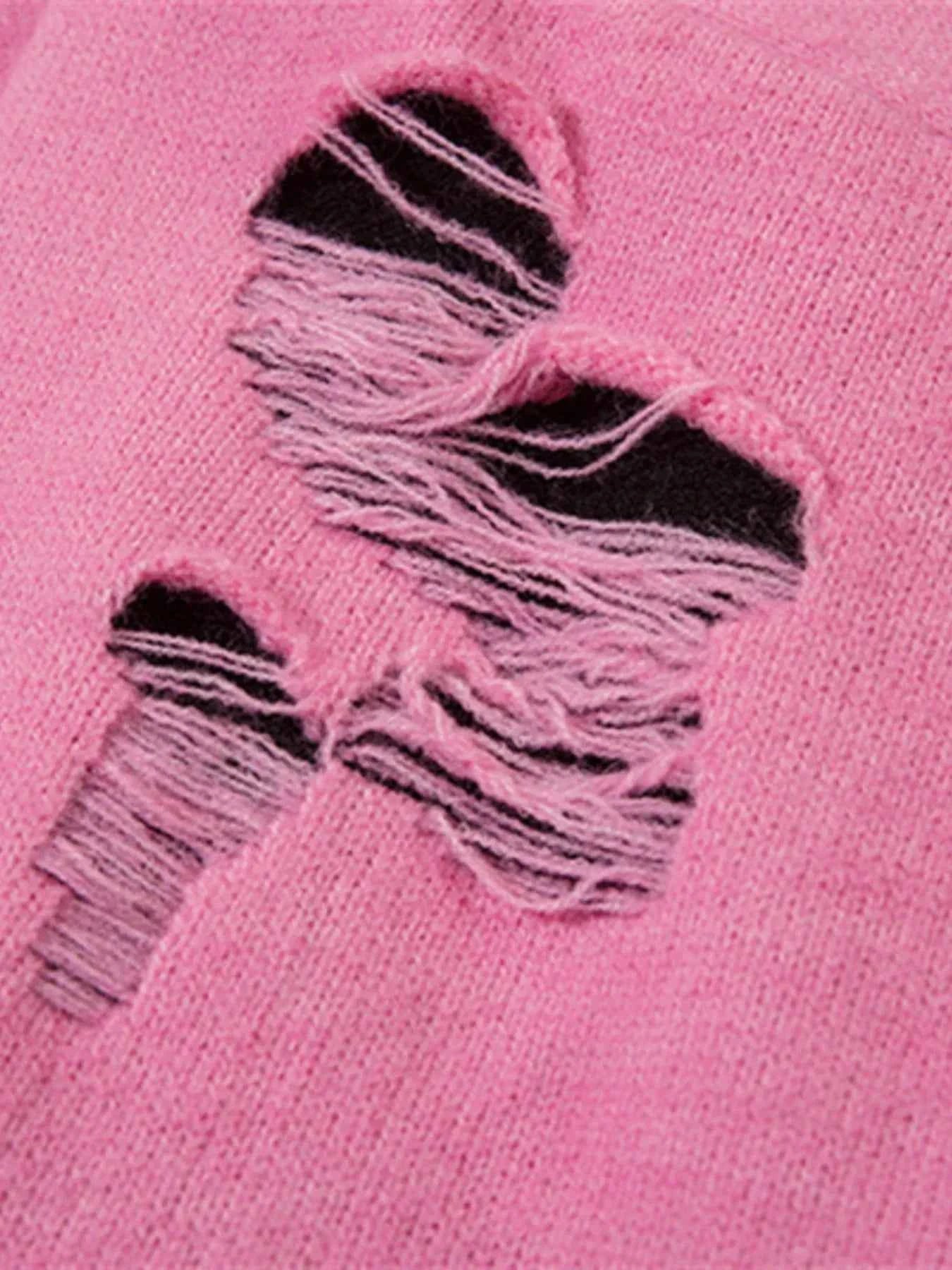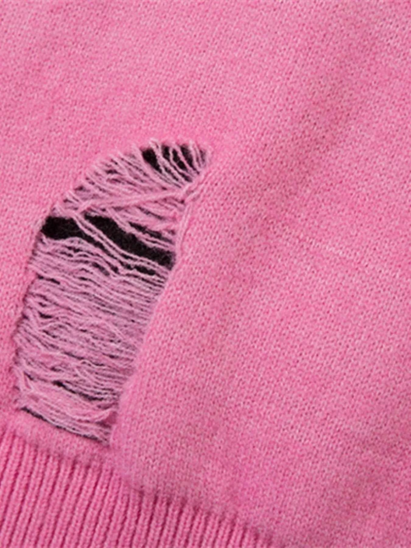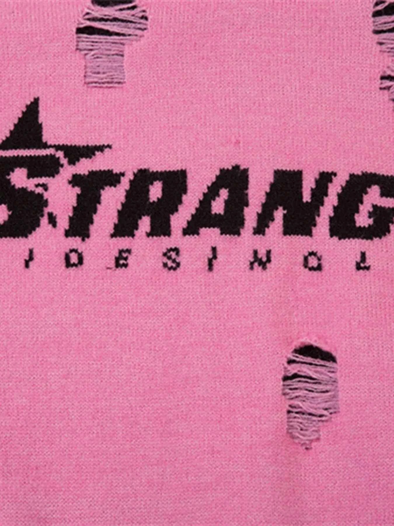 Men's Distressed Letter Round Neck Sweater