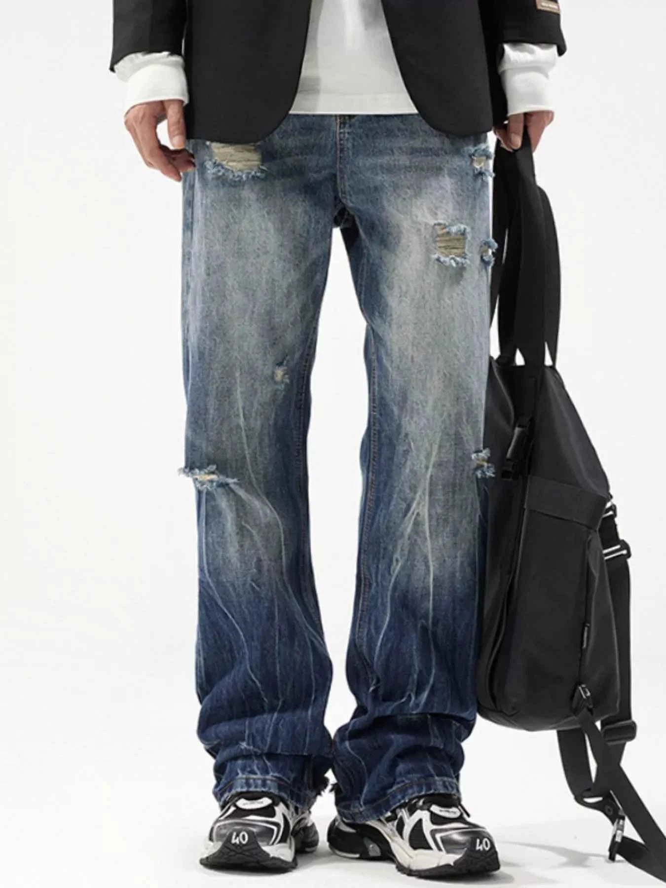 Men's Distressed Wide Leg Jeans