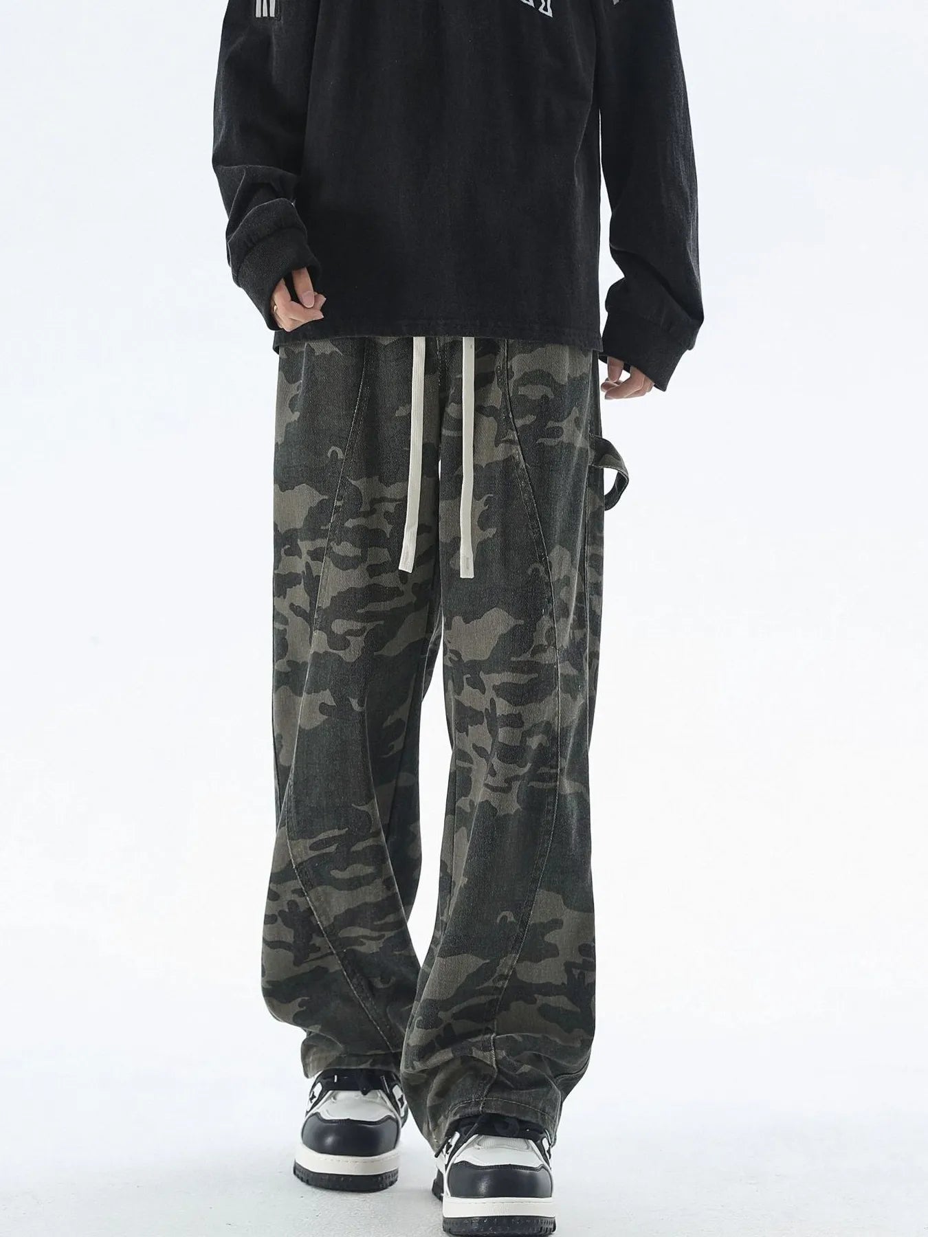 Men's Plus Size Camouflage Cargo Pants with Drawstring