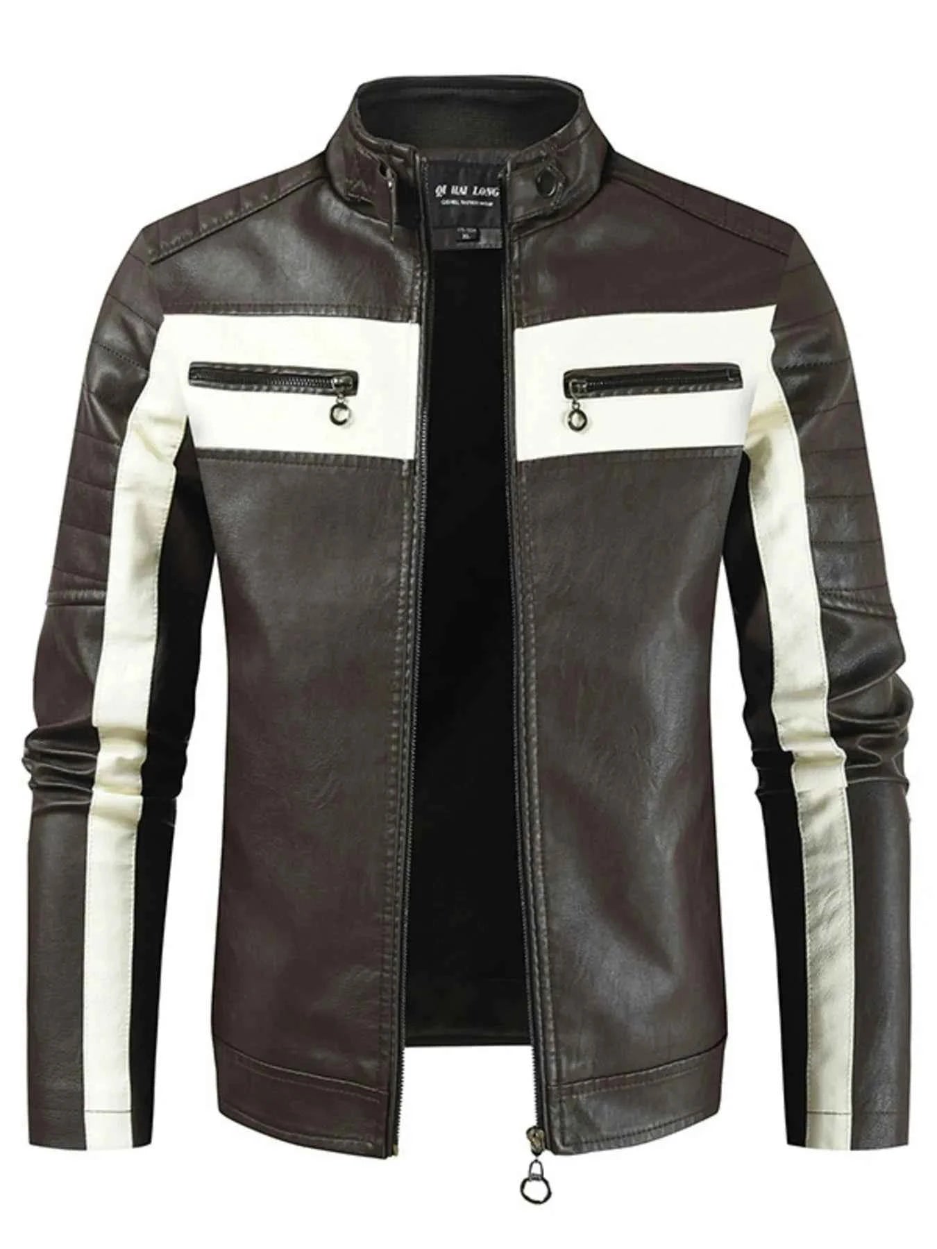 Men's Plus Size Contrast Zip Up Long Sleeve Jacket