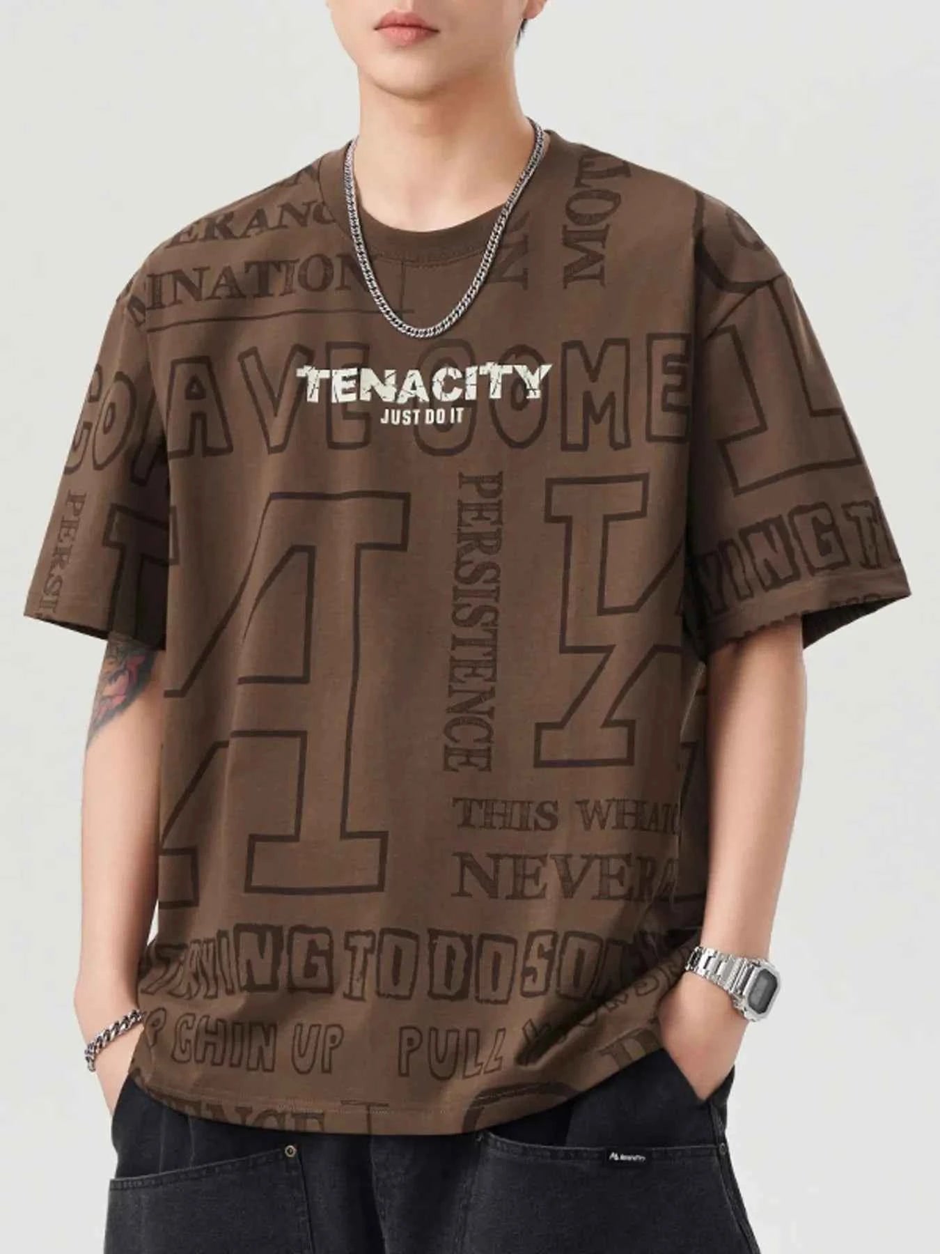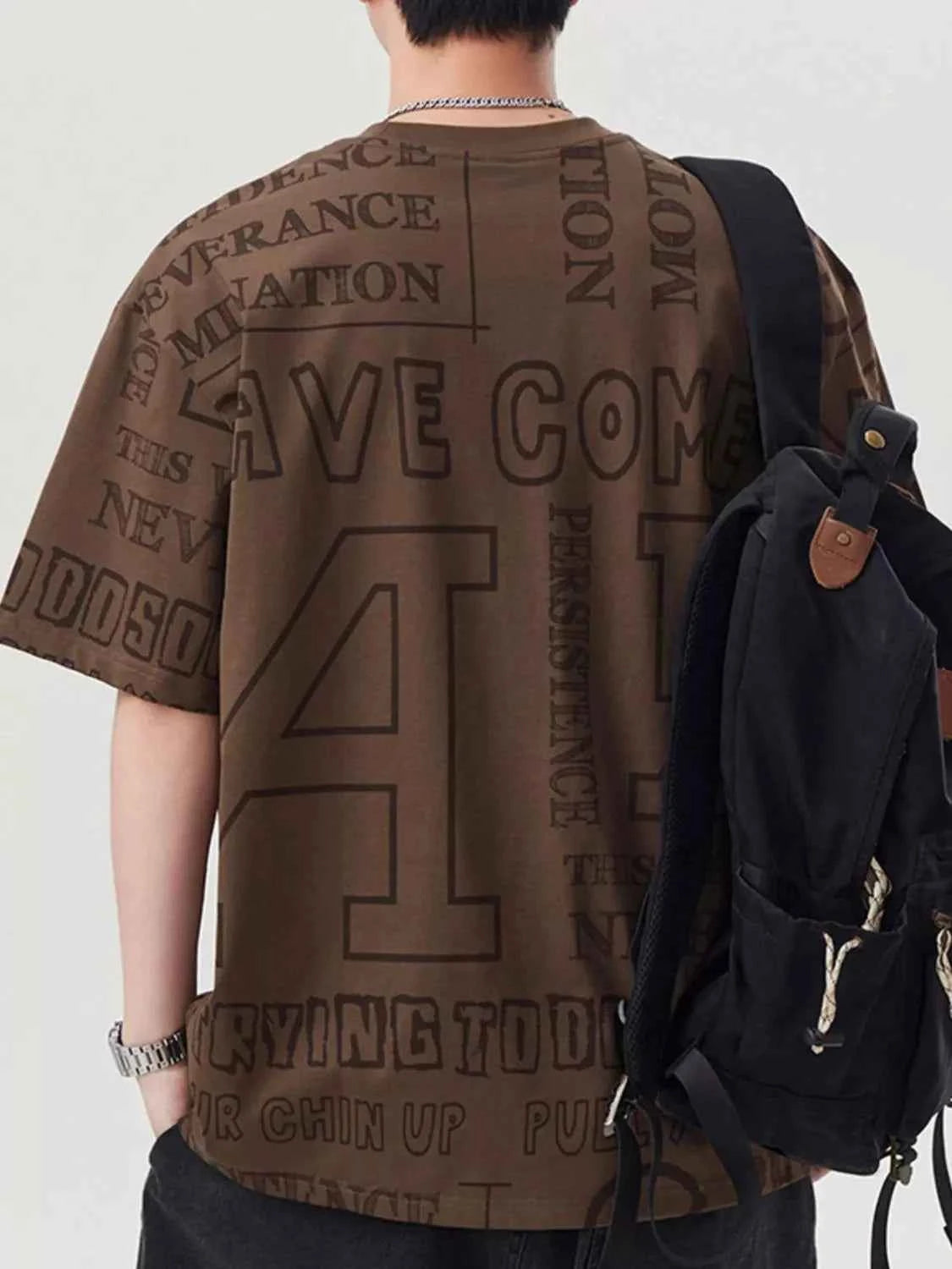 Men's Plus Size Letter Round Neck Short Sleeve T-Shirt