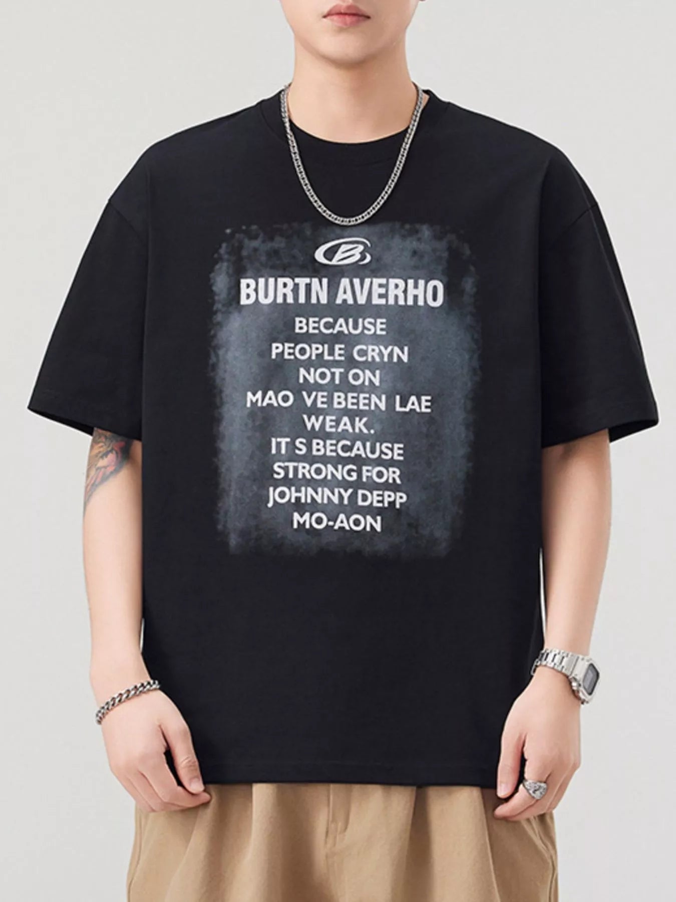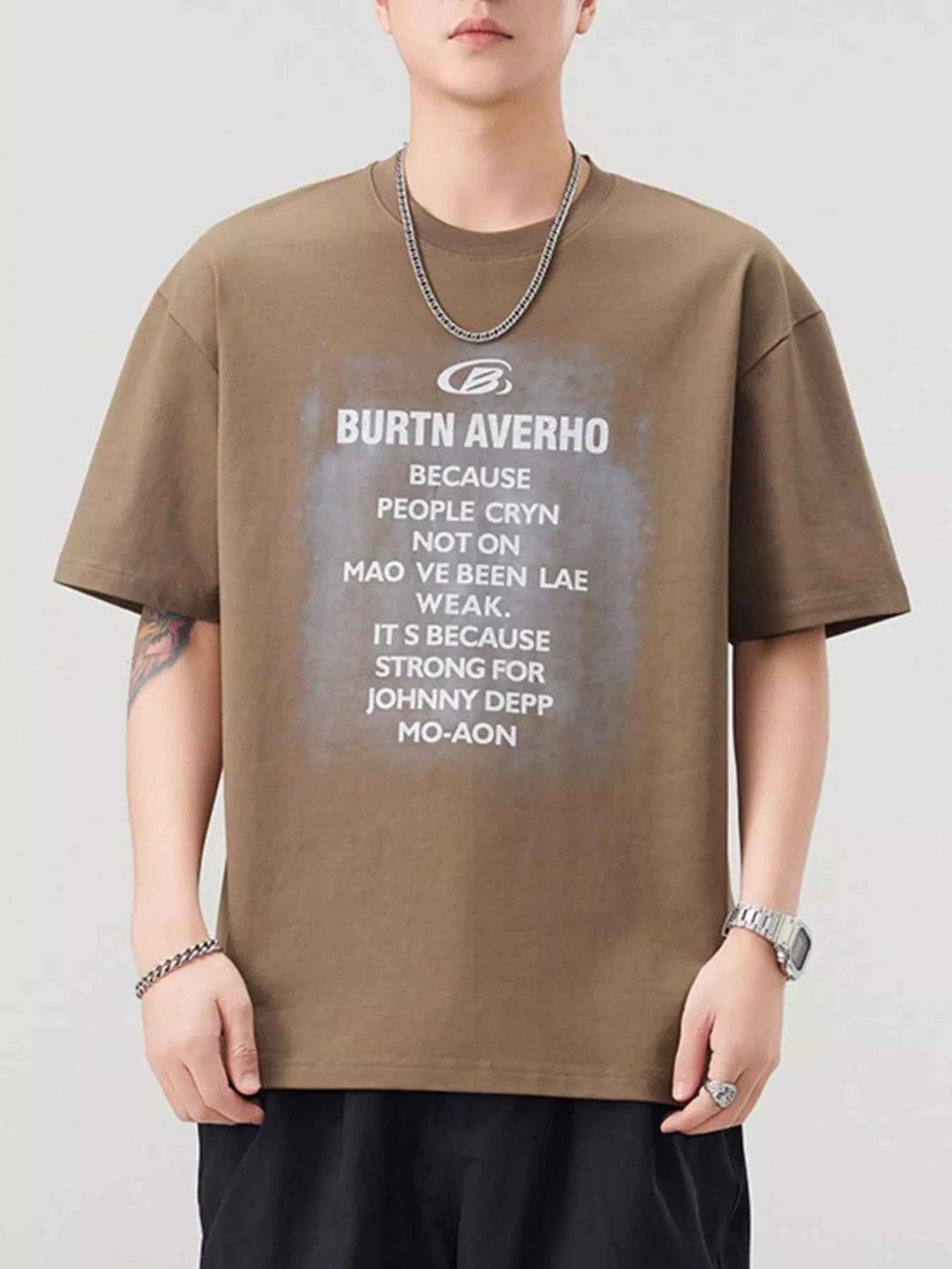 Men's Plus Size Letter Round Neck Short Sleeve T-Shirt