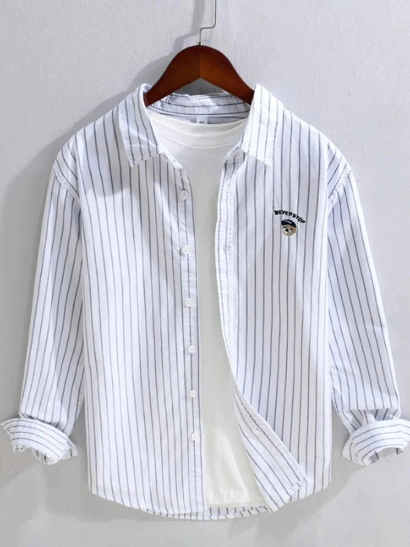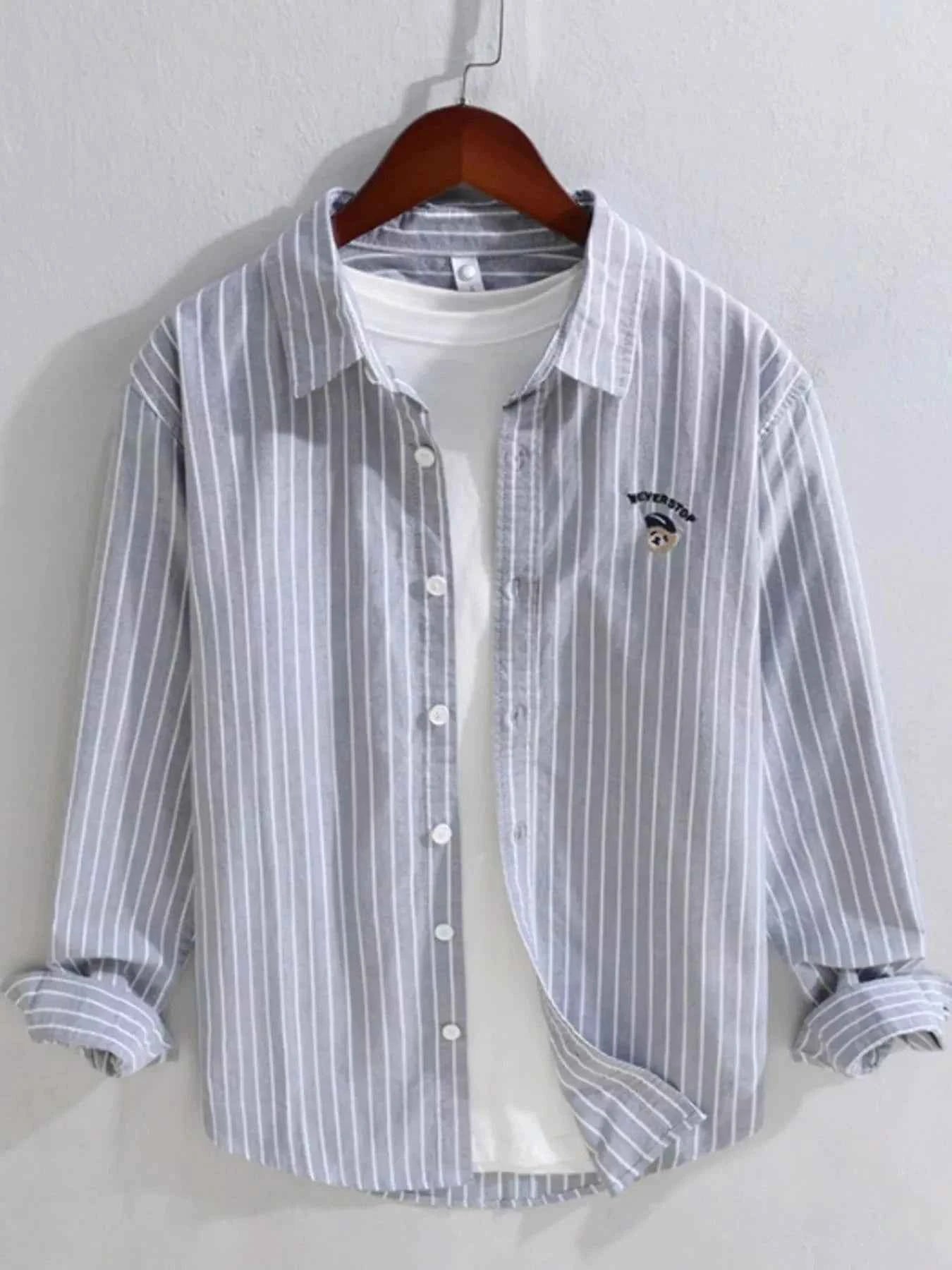Men's Plus Size Striped Button Up Long Sleeve Shirt