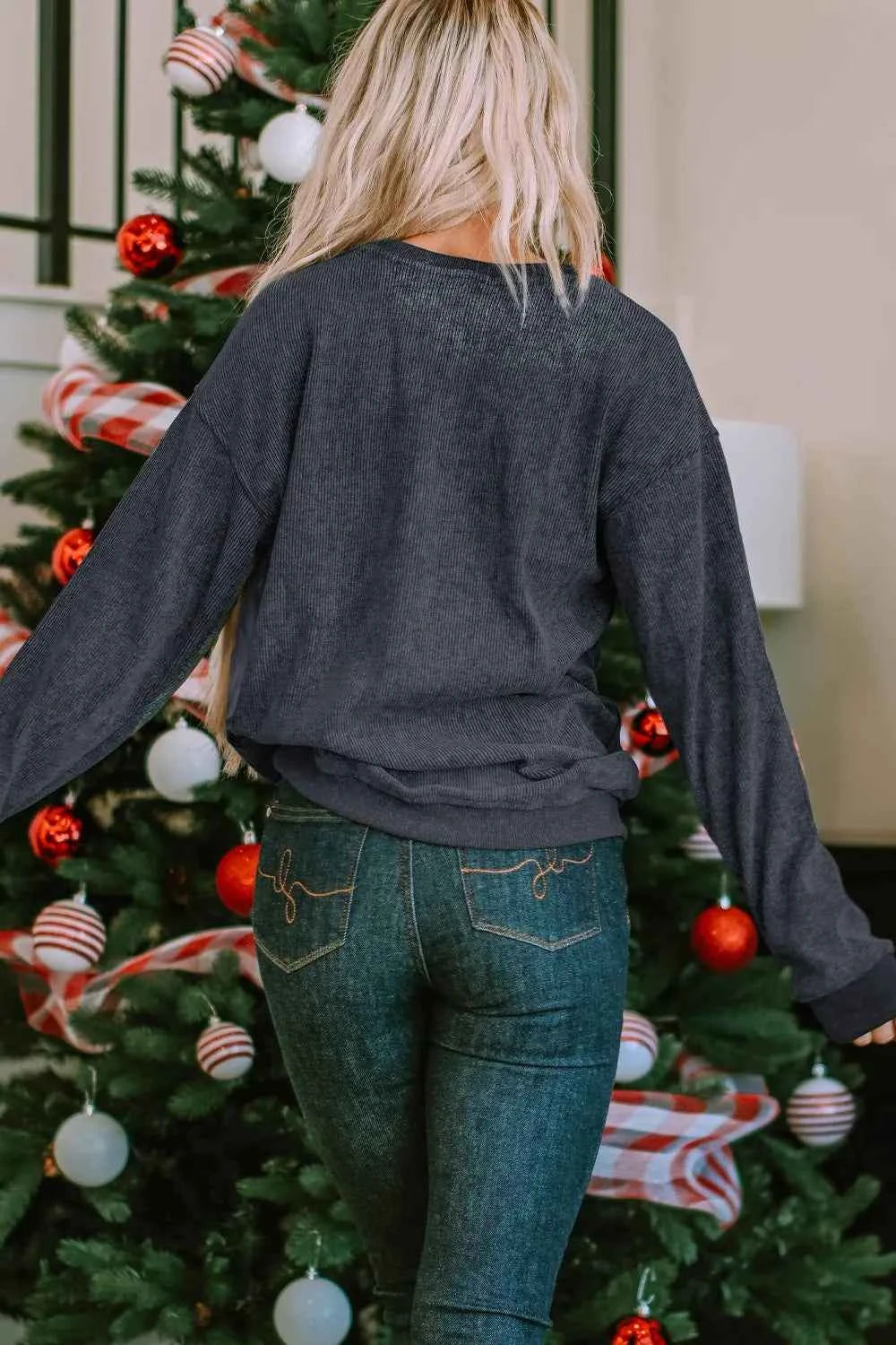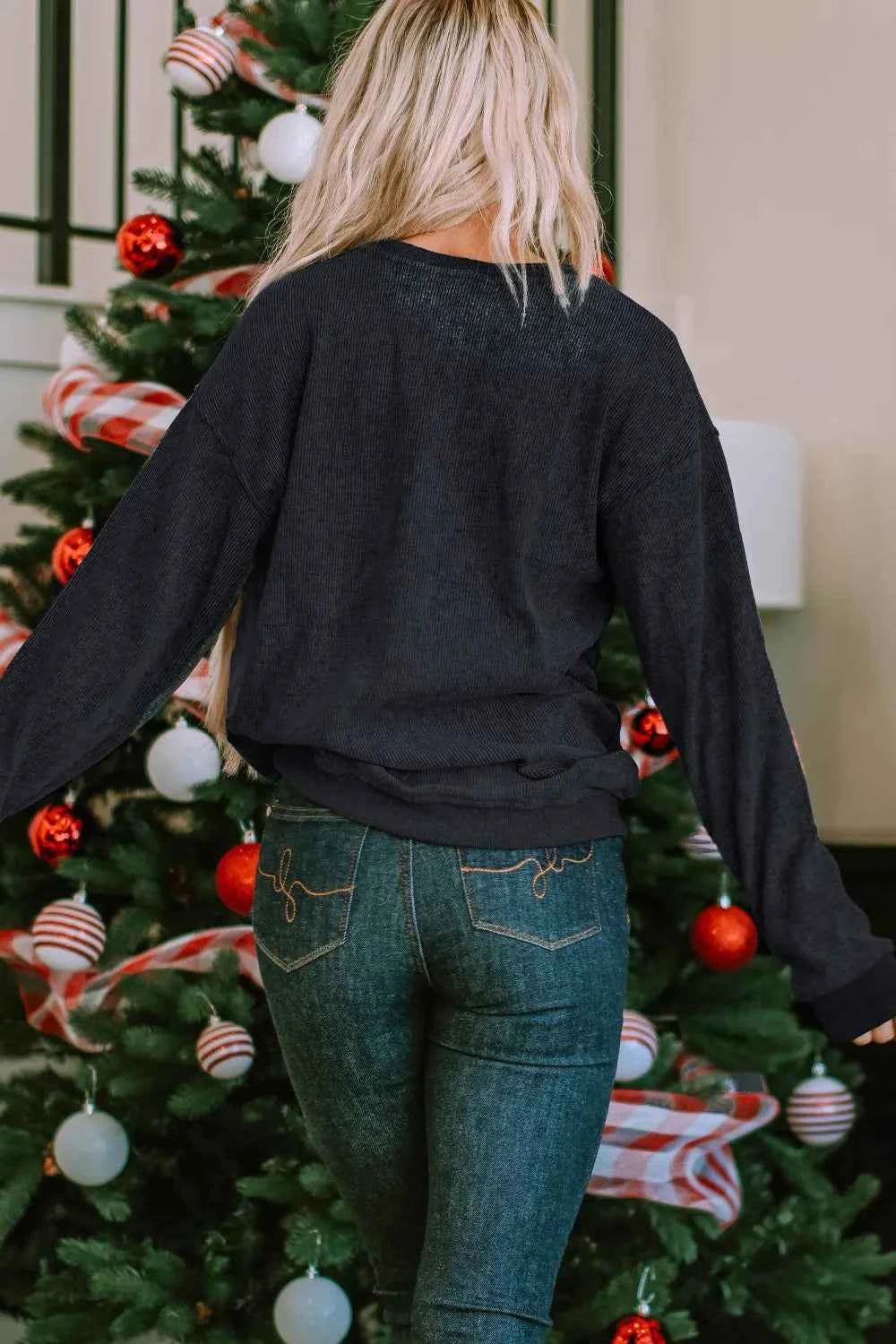Sequin Patch Pumpkin Round Neck Sweatshirt