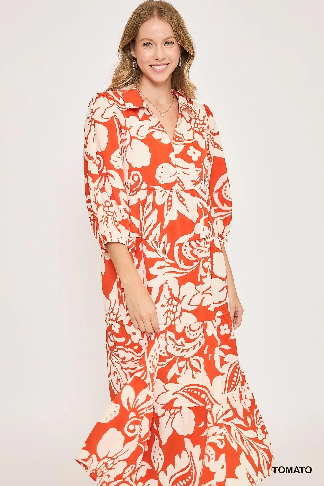 The Floral Print Tiered Midi Dress is a beautiful and feminine choice for any occasion. With a flattering tiered design, this dress offers a flowy and romantic silhouette. The vibrant floral print adds a pop of color and a touch of elegance to the dress. Perfect for spring and summer events, this midi dress will make you feel effortlessly chic and stylish.