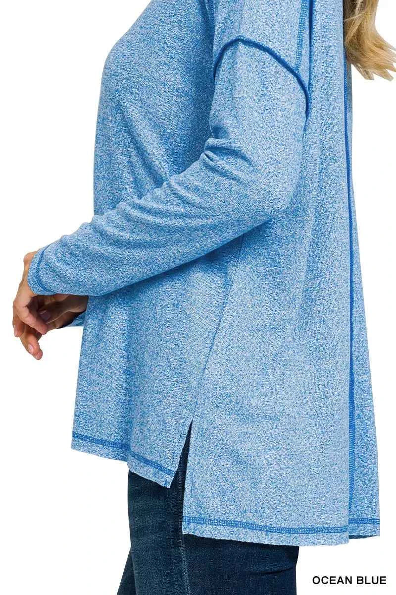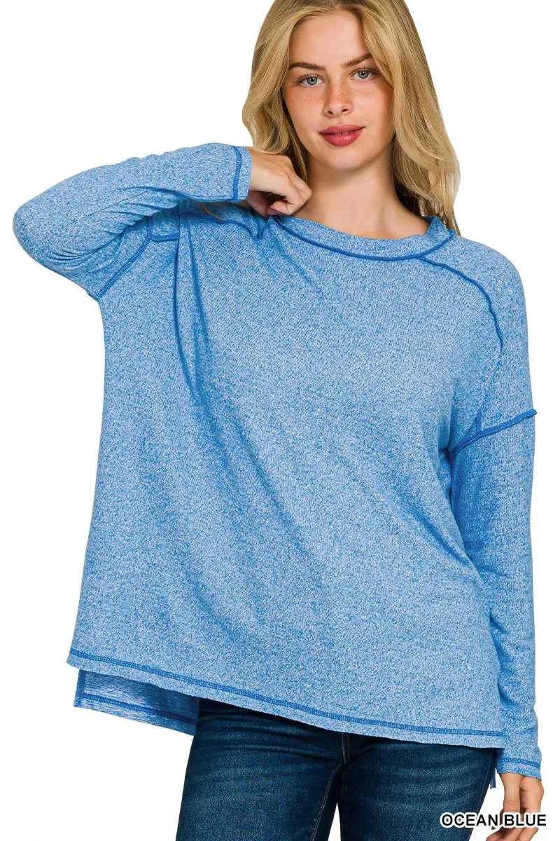 Zenana Full Size Melange Hacci Exposed Seam Hi-low Tee Plus Size